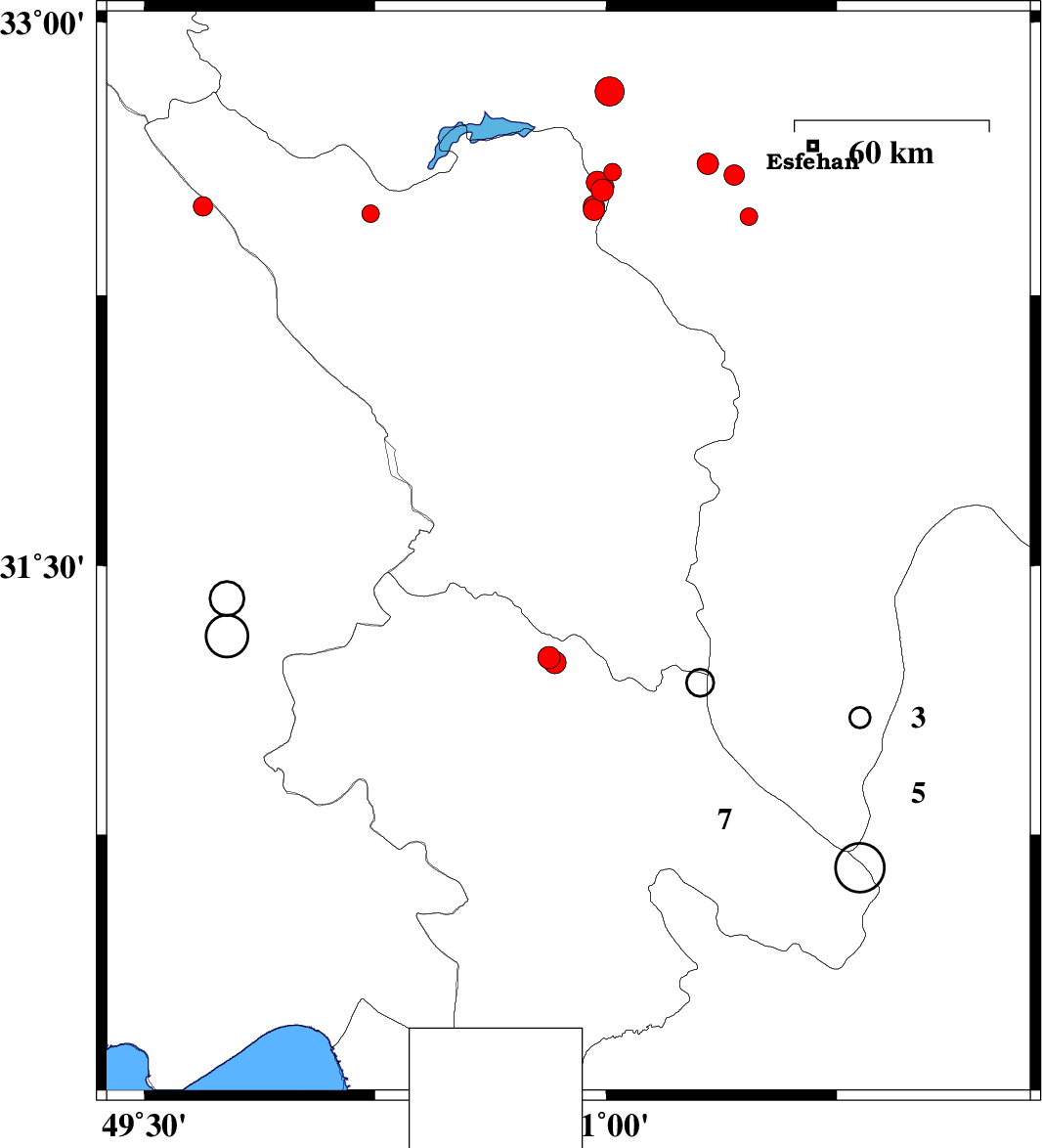 | 2016/07/31 | 08:09:05.3 | 12:39:05.3 | 31.487 | 50.85 | 15 | ML3.1 | Chaharmahal Bakhtiari Province, 4 km of Lordegan | ||