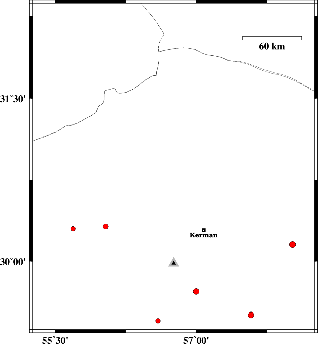 | 2016/07/29 | 12:27:01.4 | 16:57:01.4 | 30.089 | 57.596 | 14 | ML2 | Kerman Province, 54 km South-East of Kerman | ||