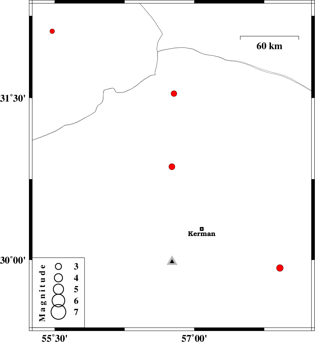 | 2016/07/31 | 10:34:03.8 | 15:04:03.8 | 29.924 | 57.918 | 17 | ML3.3 | Kerman Province, 90 km South-East of Kerman | ||
