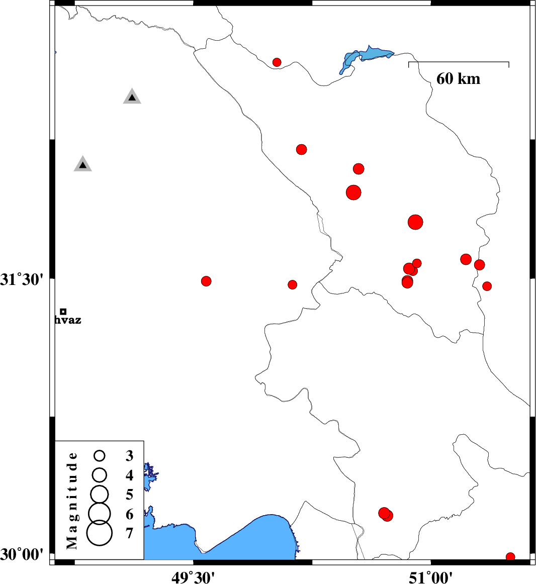 | 2016/07/08 | 10:53:19.2 | 15:23:19.2 | 29.98 | 51.501 | 6 | ML2.6 | Fars Province, 15 km South of Nurabad | ||