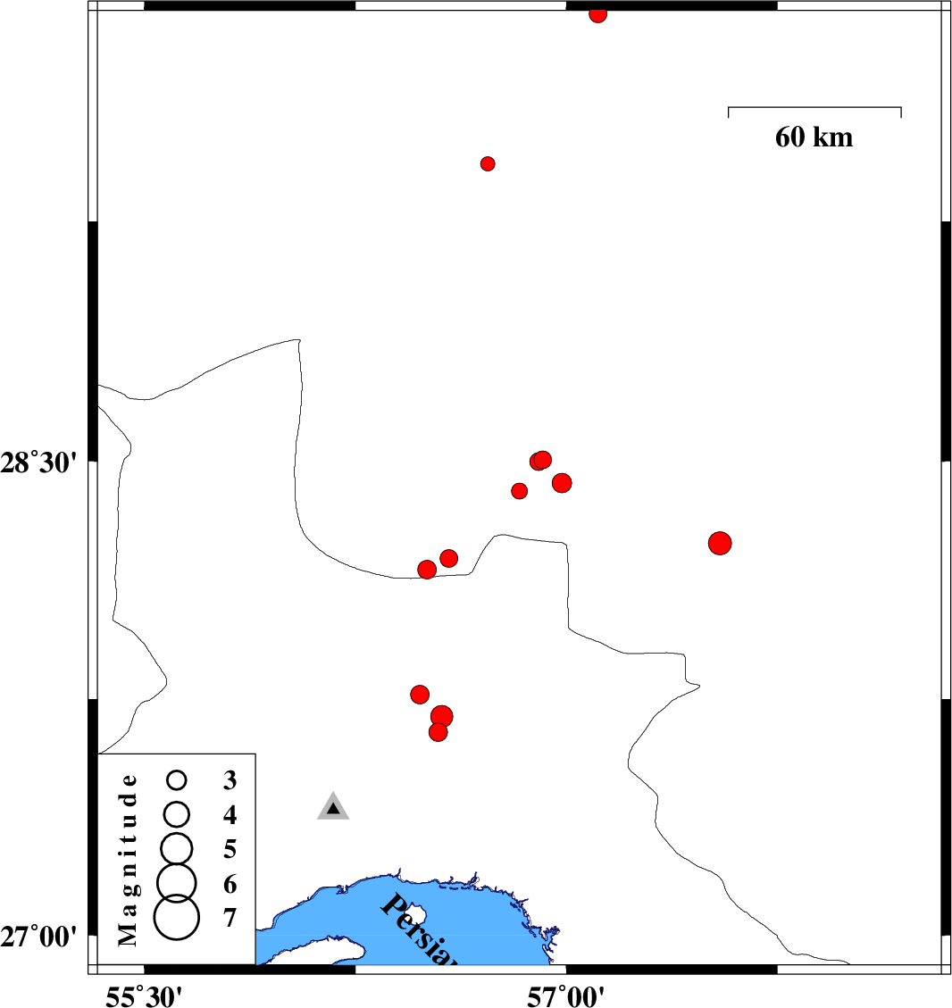 2016/08/01 | 22:26:13.1 | 02:56:13.1 | 27.645 | 56.544 | 14 | ML2.9 | Hormozgan Province, 57 km North-East of Bandar-e abbas | ||