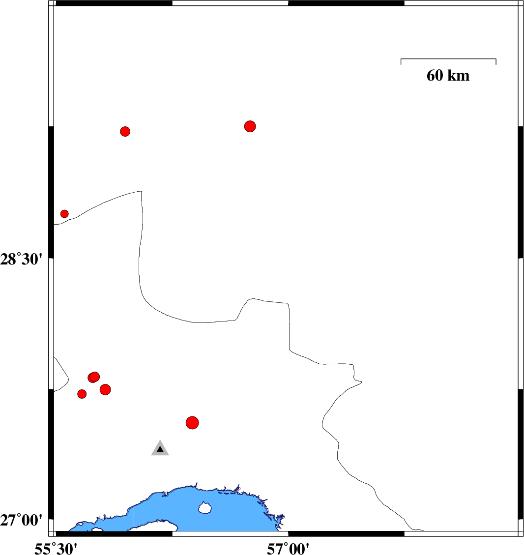 2016/08/01 | 22:26:13.1 | 02:56:13.1 | 27.645 | 56.544 | 14 | ML2.9 | Hormozgan Province, 57 km North-East of Bandar-e abbas | ||