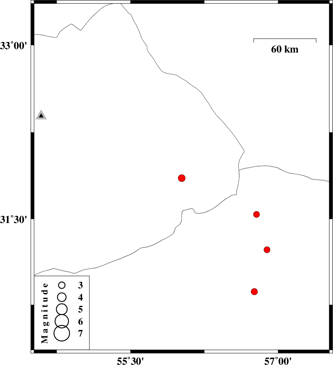 | 2016/08/13 | 09:13:59.6 | 13:43:59.6 | 31.854 | 56.02 | 14 | ML3.2 | Yazd Province, 65 km North-East of Bafq | ||