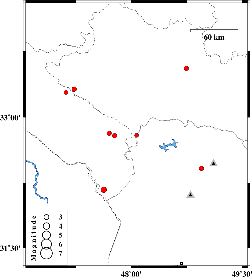 | 2016/07/18 | 17:09:58.2 | 21:39:58.2 | 32.172 | 47.627 | 15 | ML3.5 | Ilam Province, 59 km -West of Shush |