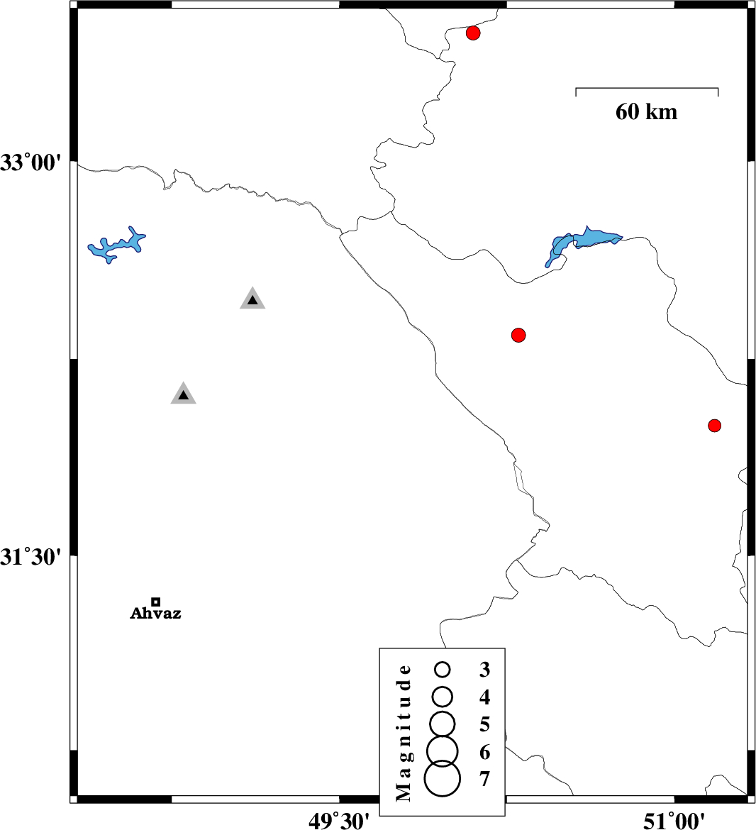2016/08/08 | 17:49:01.7 | 22:19:01.7 | 32.418 | 48.949 | 18 | ML2.8 | Khoozestan Province, 15 km -West of Lali | ||