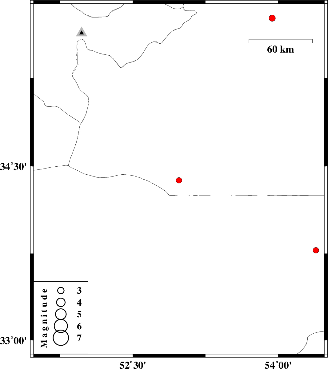 | 2016/08/24 | 01:11:07.3 | 05:41:07.3 | 34.378 | 52.976 | 15 | ML2.7 | Semnan Province, 110 km South-East of Garmsar | ||