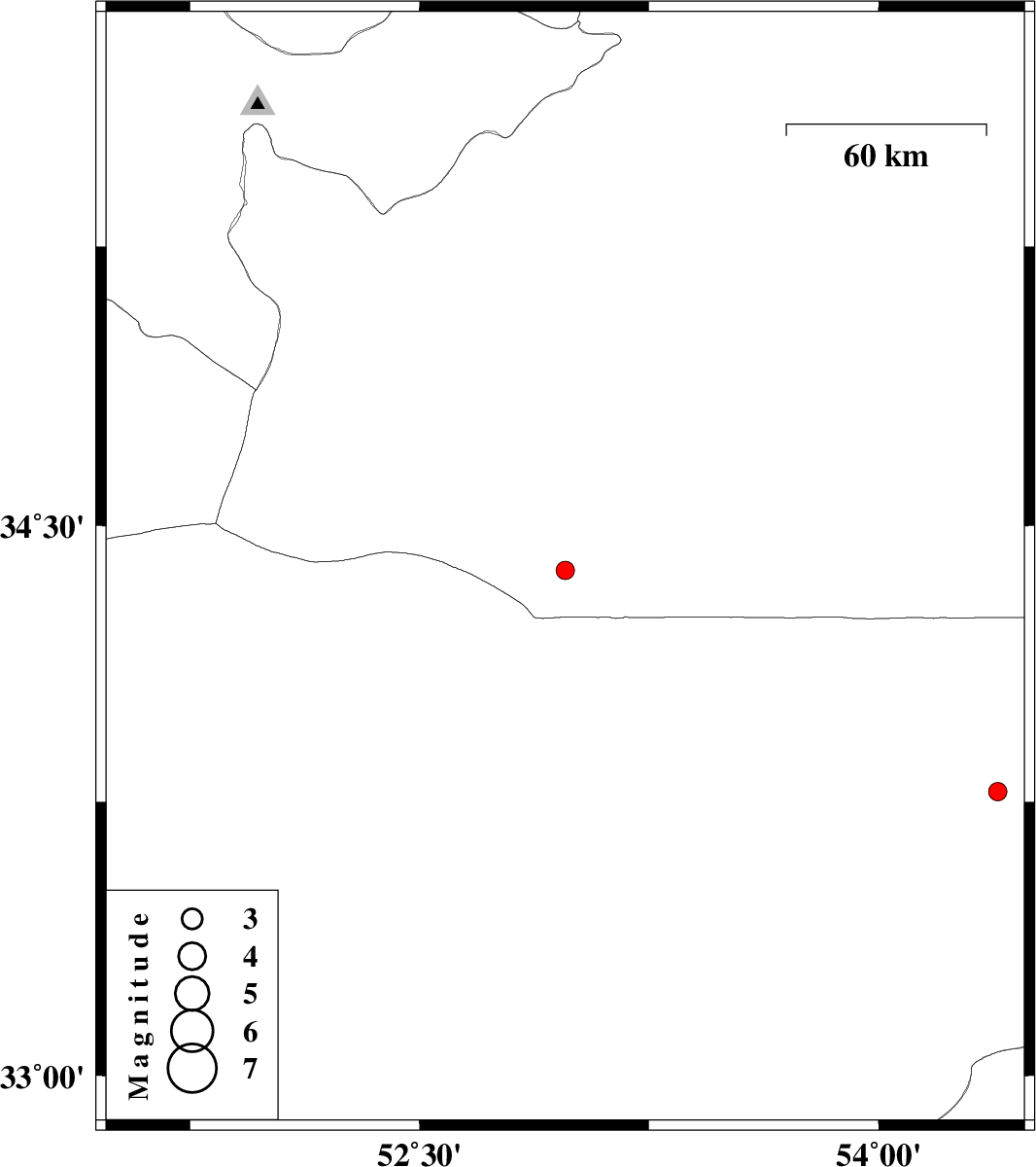 | 2016/08/24 | 01:11:07.3 | 05:41:07.3 | 34.378 | 52.976 | 15 | ML2.7 | Semnan Province, 110 km South-East of Garmsar |
