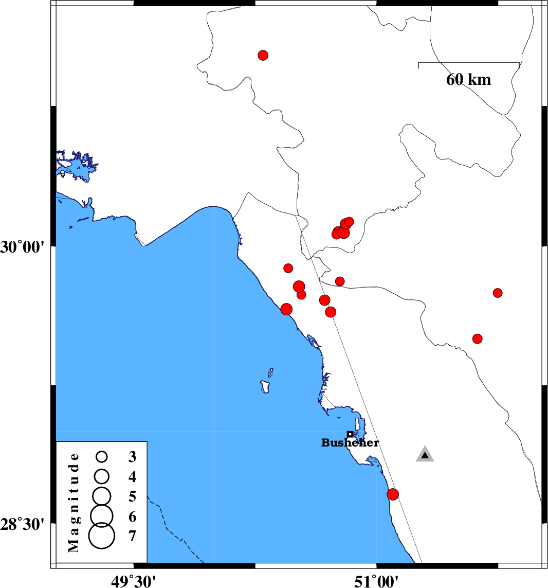 2016/08/26 | 22:40:08.1 | 03:10:08.1 | 29.739 | 50.534 | 15 | ML2.5 | Bushehr Province, 18 km North of Bandar-e genaveh | ||