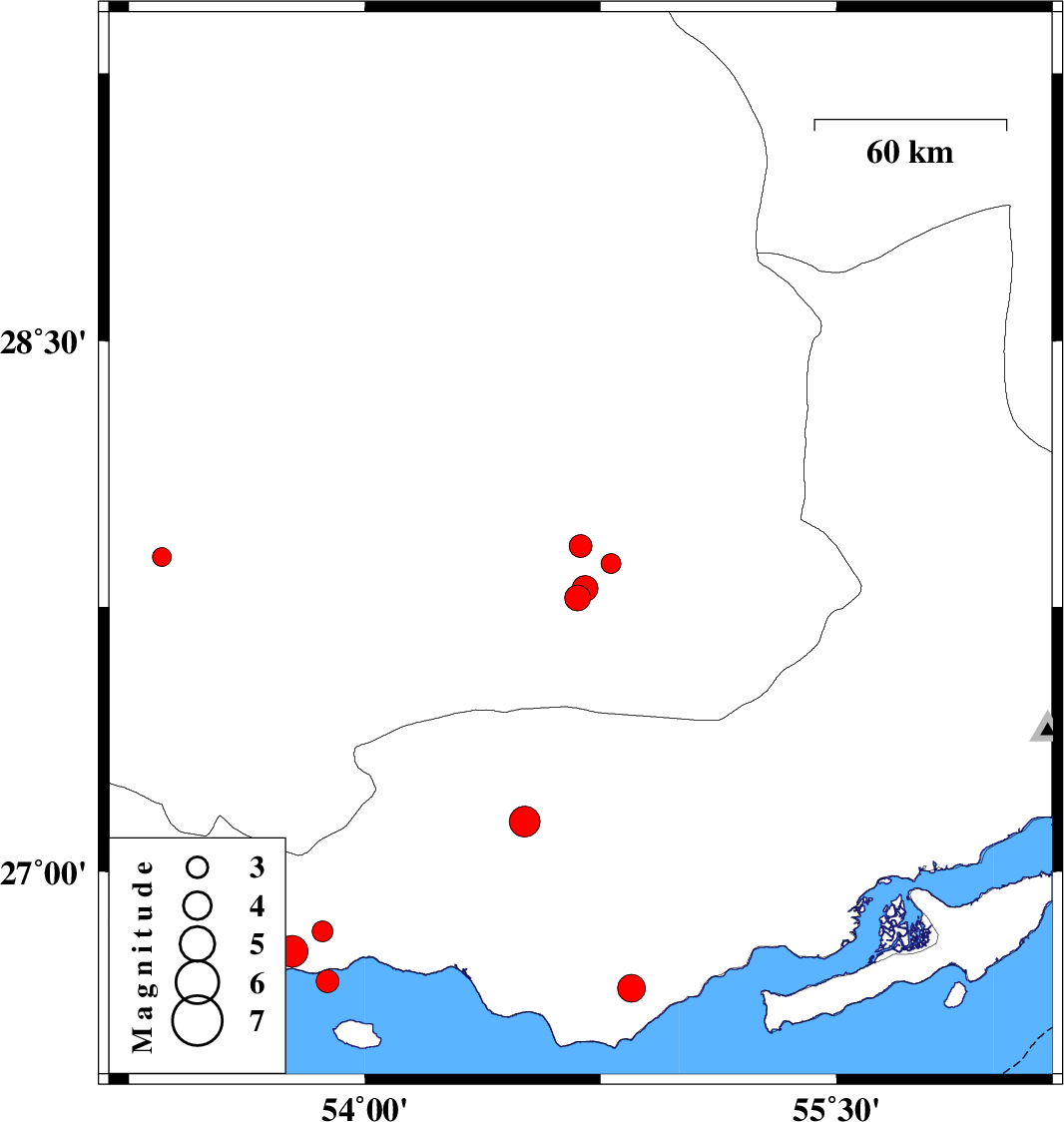 | 2016/07/26 | 10:10:41.4 | 14:40:41.4 | 27.803 | 54.701 | 15 | ML3.7 | Fars Province, 38 km North-East of Lar |