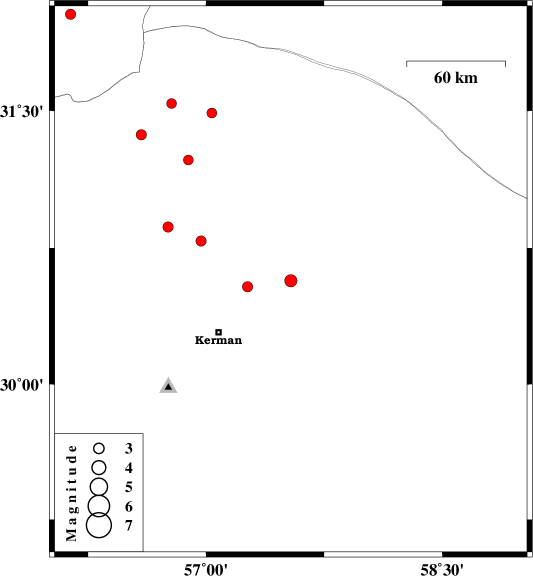 | 2016/08/16 | 15:13:18.9 | 19:43:18.9 | 30.538 | 57.264 | 14 | ML2.9 | Kerman Province, 33 km North-East of Kerman | ||
