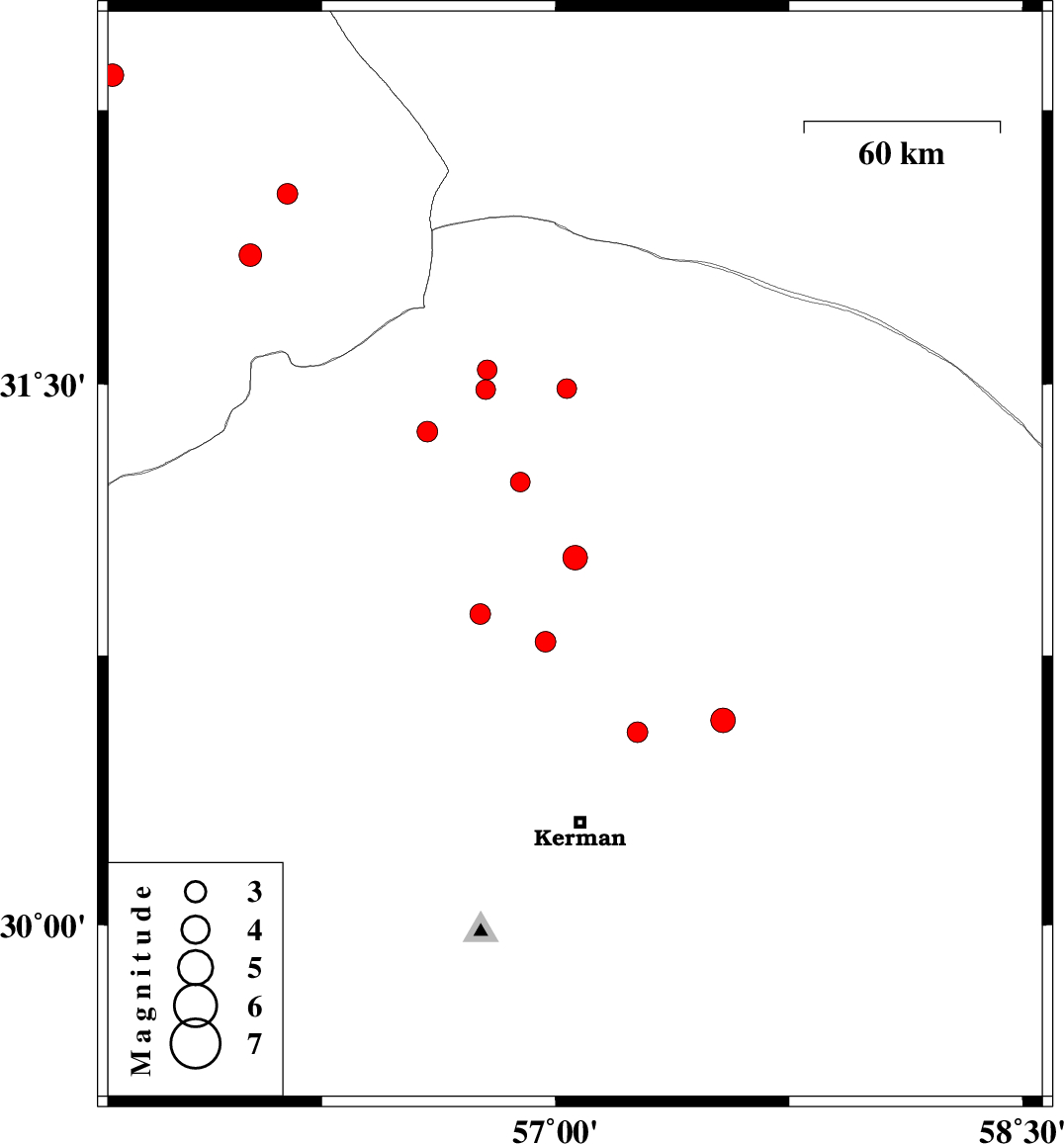 2016/08/06 | 04:12:01.5 | 08:42:01.5 | 30.865 | 56.758 | 14 | ML3 | Kerman Province, 19 km -East of Zarand | ||