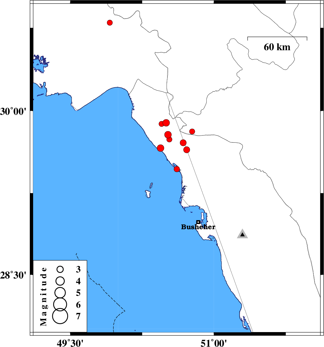 | 2016/08/27 | 04:14:06.6 | 08:44:06.6 | 29.811 | 50.773 | 15 | ML2.5 | Fars Province, 36 km North-East of Bandar-e genaveh | ||
