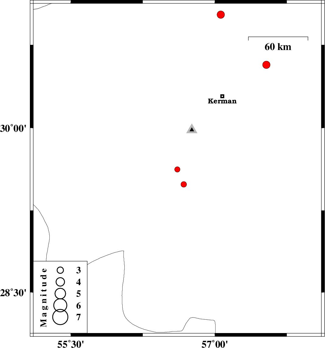 | 2016/08/31 | 18:19:27.8 | 22:49:27.8 | 30.57 | 57.538 | 10 | ML3.5 | Kerman Province, 54 km North-East of Kerman |