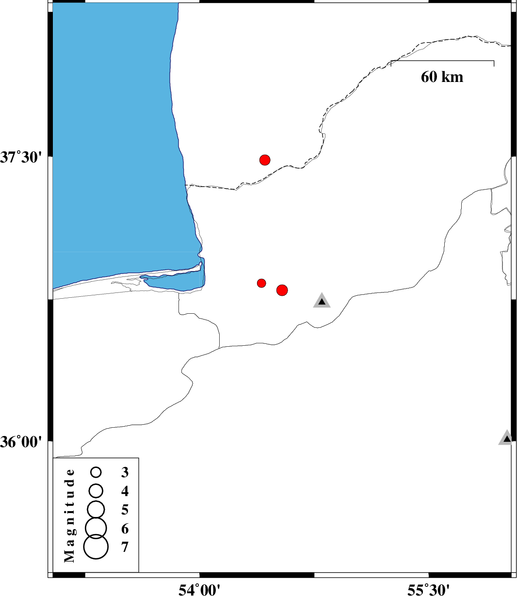 | 2016/09/10 | 03:18:46.9 | 07:48:46.9 | 36.798 | 54.539 | 15 | ML3.3 | Golestan Province, 10 km -East of Gorgan | ||