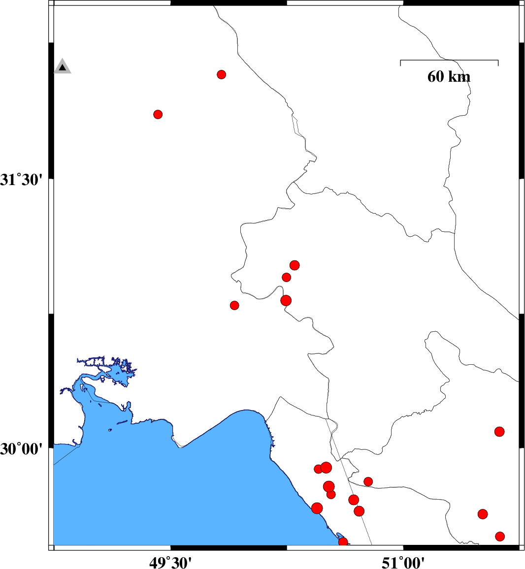 | 2016/08/15 | 00:58:00.3 | 05:28:00.3 | 29.501 | 51.622 | 6 | ML2.7 | Fars Province, 14 km South of Kazerun |