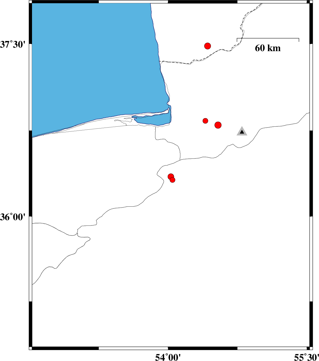 | 2016/09/10 | 03:18:46.9 | 07:48:46.9 | 36.798 | 54.539 | 15 | ML3.3 | Golestan Province, 10 km -East of Gorgan | ||