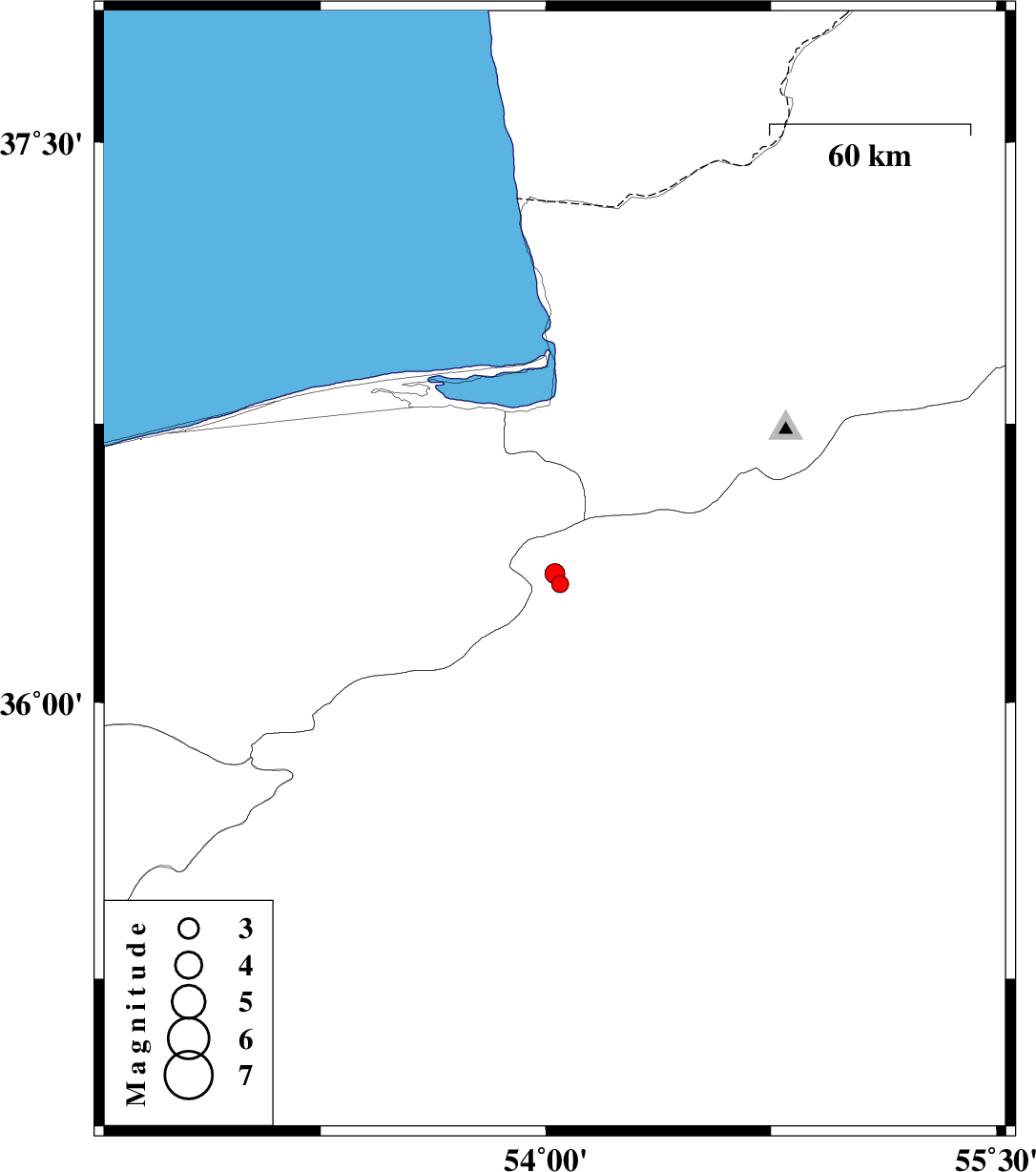 | 2016/09/19 | 08:14:42.1 | 12:44:42.1 | 36.348 | 54.03 | 15 | ML2.9 | Semnan Province, 35 km North-West of Damghan |