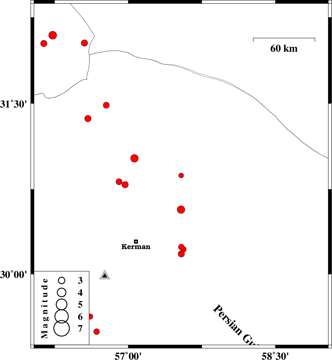 2016/09/18 | 11:14:26.1 | 15:44:26.1 | 30.219 | 57.563 | 16 | ML2.6 | Kerman Province, 47 km -East of Kerman | ||