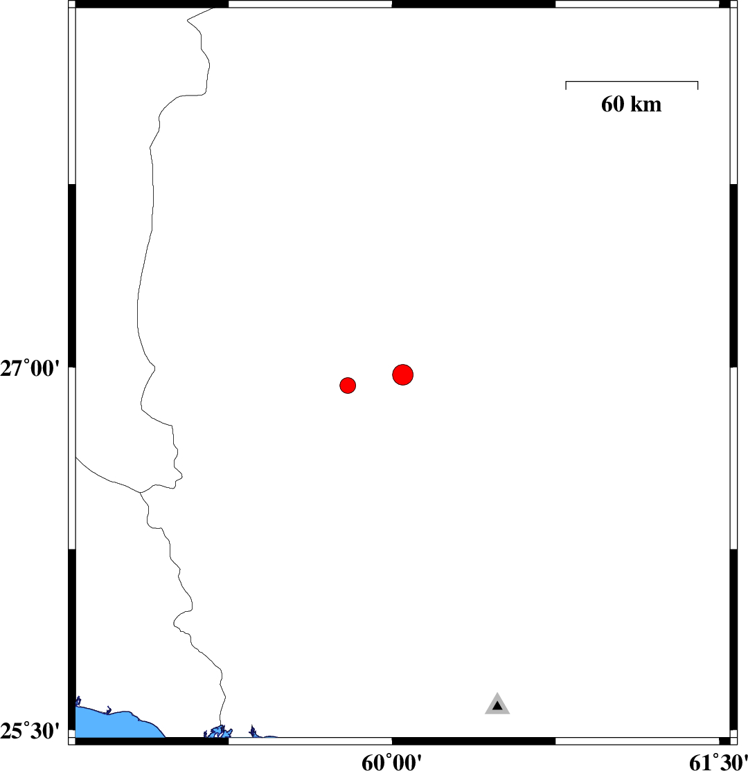 2016/09/21 | 07:41:13.1 | 11:11:13.1 | 26.968 | 60.049 | 16 | ML4.2 | Sistan va Baloochestan Province, 70 km South-West of Iranshahr |