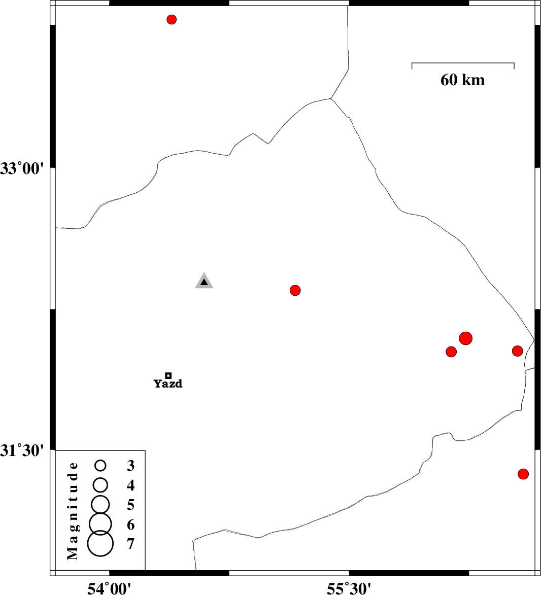 2016/09/10 | 18:03:42.1 | 22:33:42.1 | 32.095 | 56.229 | 14 | ML3.6 | Yazd Province, 96 km North-East of Bafq | ||