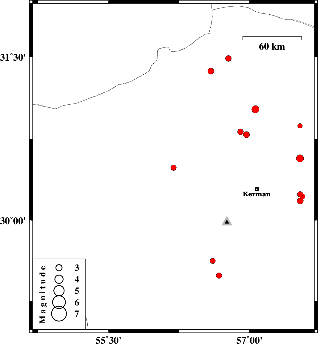 2016/09/18 | 11:14:26.1 | 15:44:26.1 | 30.219 | 57.563 | 16 | ML2.6 | Kerman Province, 47 km -East of Kerman | ||
