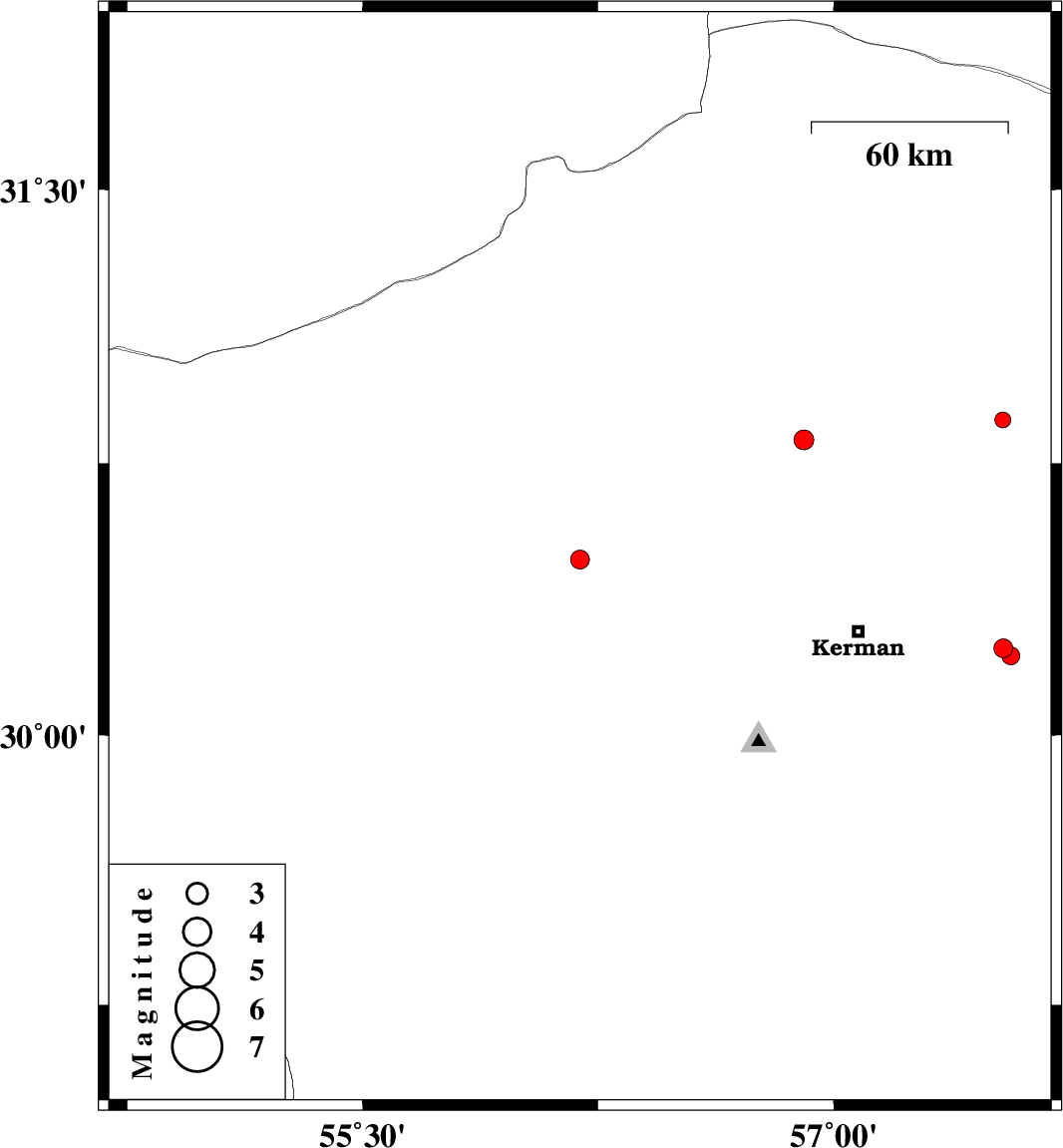 2016/09/18 | 11:14:26.1 | 15:44:26.1 | 30.219 | 57.563 | 16 | ML2.6 | Kerman Province, 47 km -East of Kerman | ||