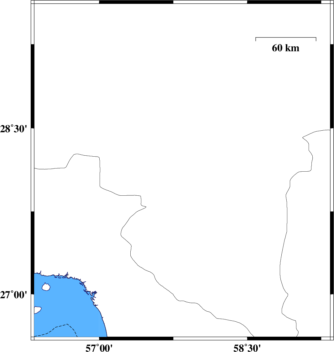 | 2016/10/01 | 04:19:18.8 | 07:49:18.8 | 28.111 | 57.841 | 14 | ML3.6 | Kerman Province, 23 km North-East of Kahnuj |