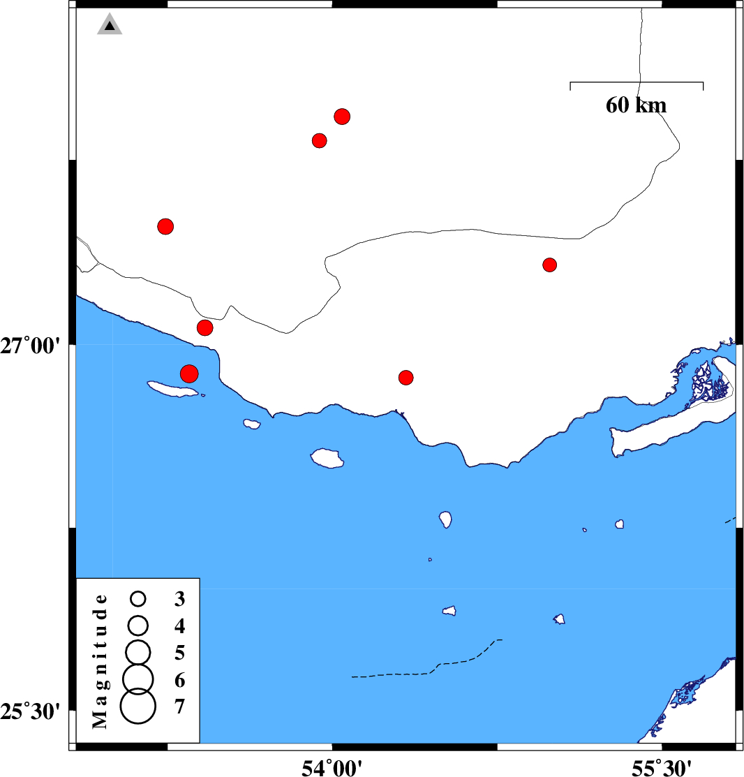 2016/09/17 | 15:31:15.6 | 20:01:15.6 | 26.88 | 53.348 | 15 | ML3.7 | Persian Gulf, 53 km South-East of Lamerd | ||