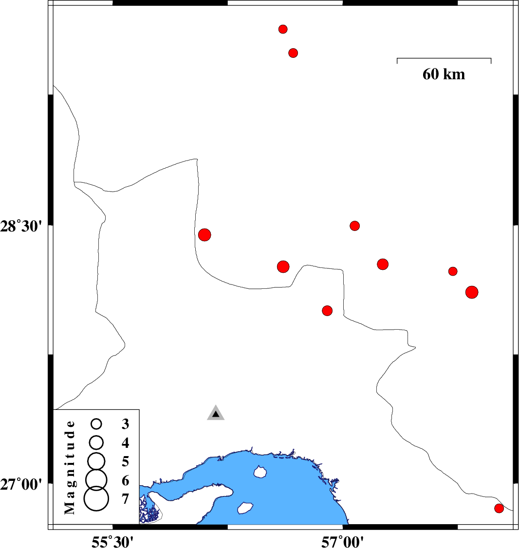 | 2016/09/25 | 20:37:59.7 | 00:07:59.7 | 28.444 | 56.099 | 15 | ML3.6 | Kerman Province, 24 km North-East of Hajiabad | ||