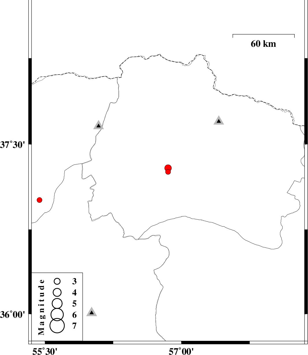 | 2016/10/04 | 13:16:18.5 | 16:46:18.5 | 37.258 | 56.853 | 15 | ML2.6 | Khorasan(north) Province, 33 km South of Ashkhaneh | ||
