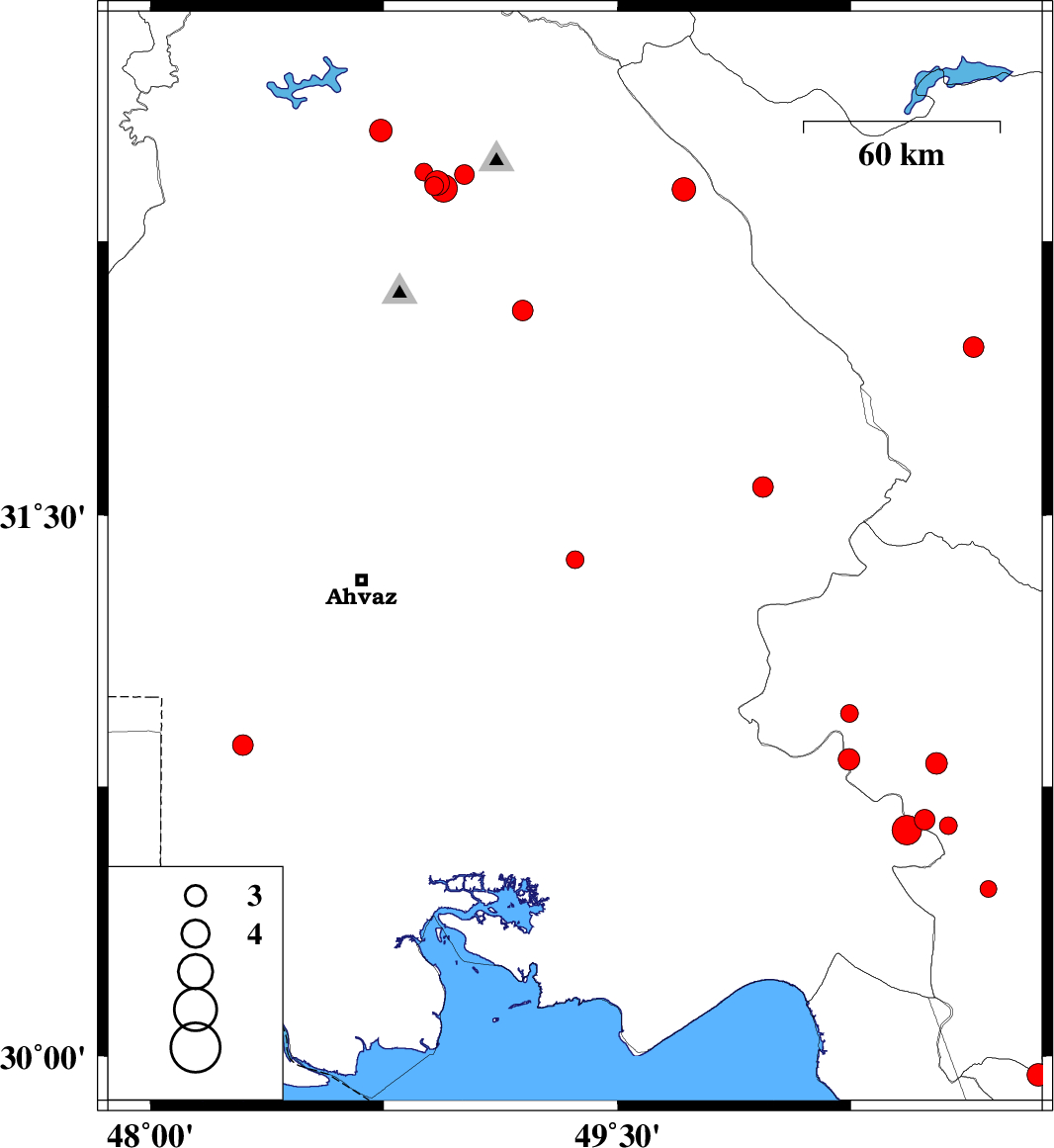 2016/09/13 | 08:51:46.6 | 13:21:46.6 | 30.865 | 48.297 | 15 | ML3 | Khoozestan Province, 56 km North of Abadan | ||