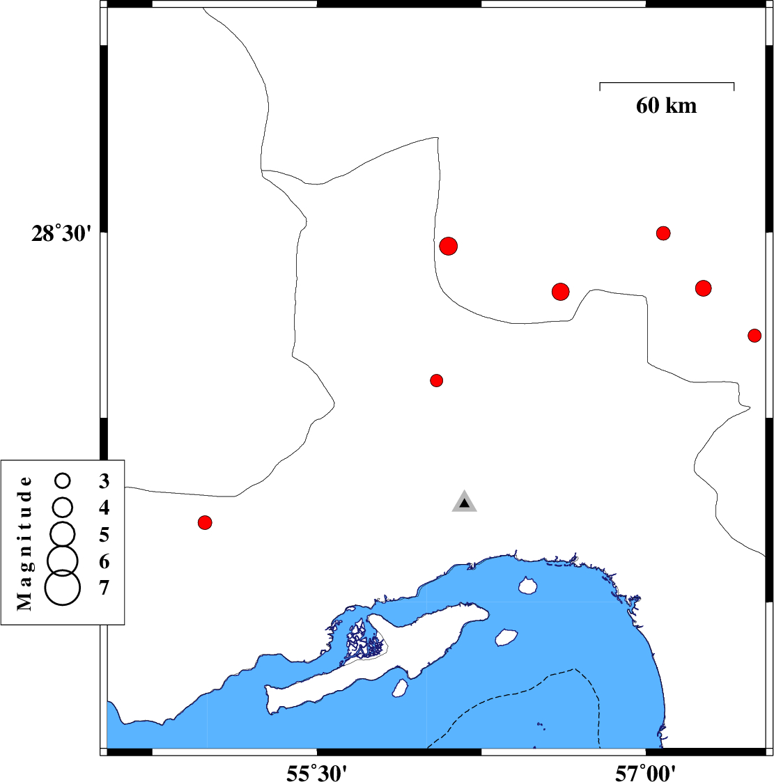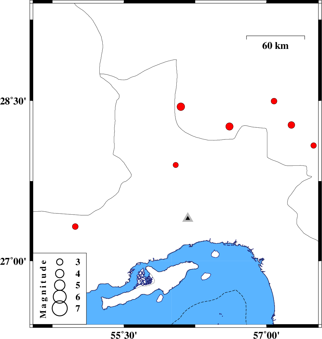 | 2016/09/15 | 10:36:05.0 | 15:06:05.0 | 28.273 | 57.261 | 14 | ML3.2 | Kerman Province, 56 km North-West of Kahnuj |