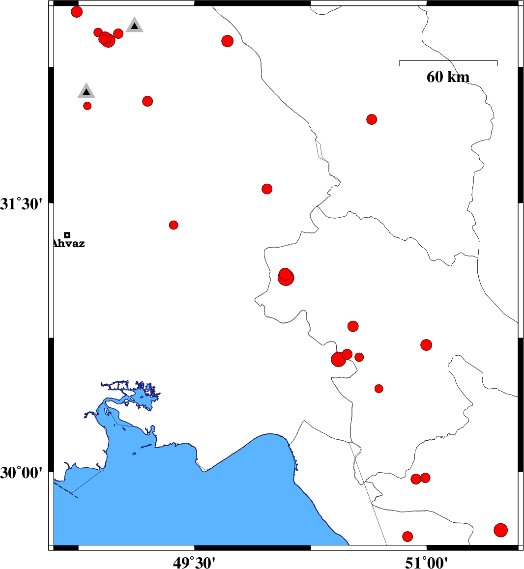 | 2016/09/30 | 12:35:54.3 | 16:05:54.3 | 32.409 | 48.922 | 18 | ML3.5 | Khoozestan Province, 18 km -West of Lali | ||