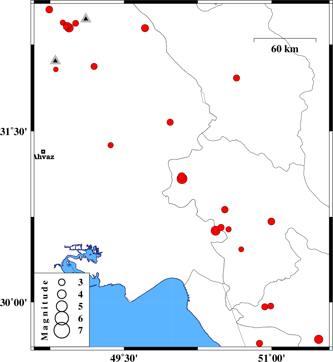 | 2016/09/30 | 12:35:54.3 | 16:05:54.3 | 32.409 | 48.922 | 18 | ML3.5 | Khoozestan Province, 18 km -West of Lali | ||