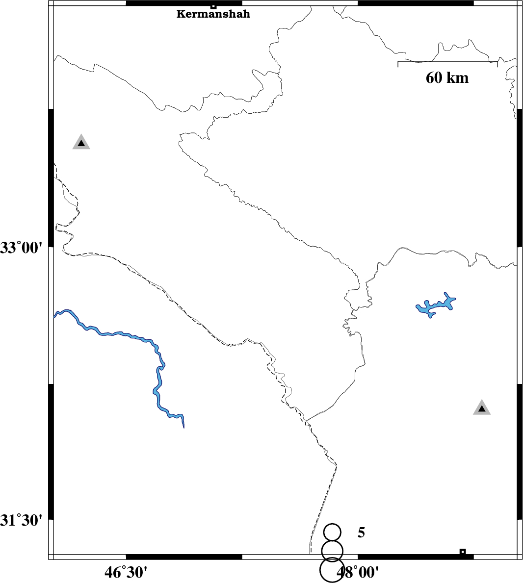 | 2016/10/05 | 01:06:39.5 | 04:36:39.5 | 34.253 | 46.914 | 6 | ML2.5 | Kermanshah Province, 15 km -West of Kermanshah |