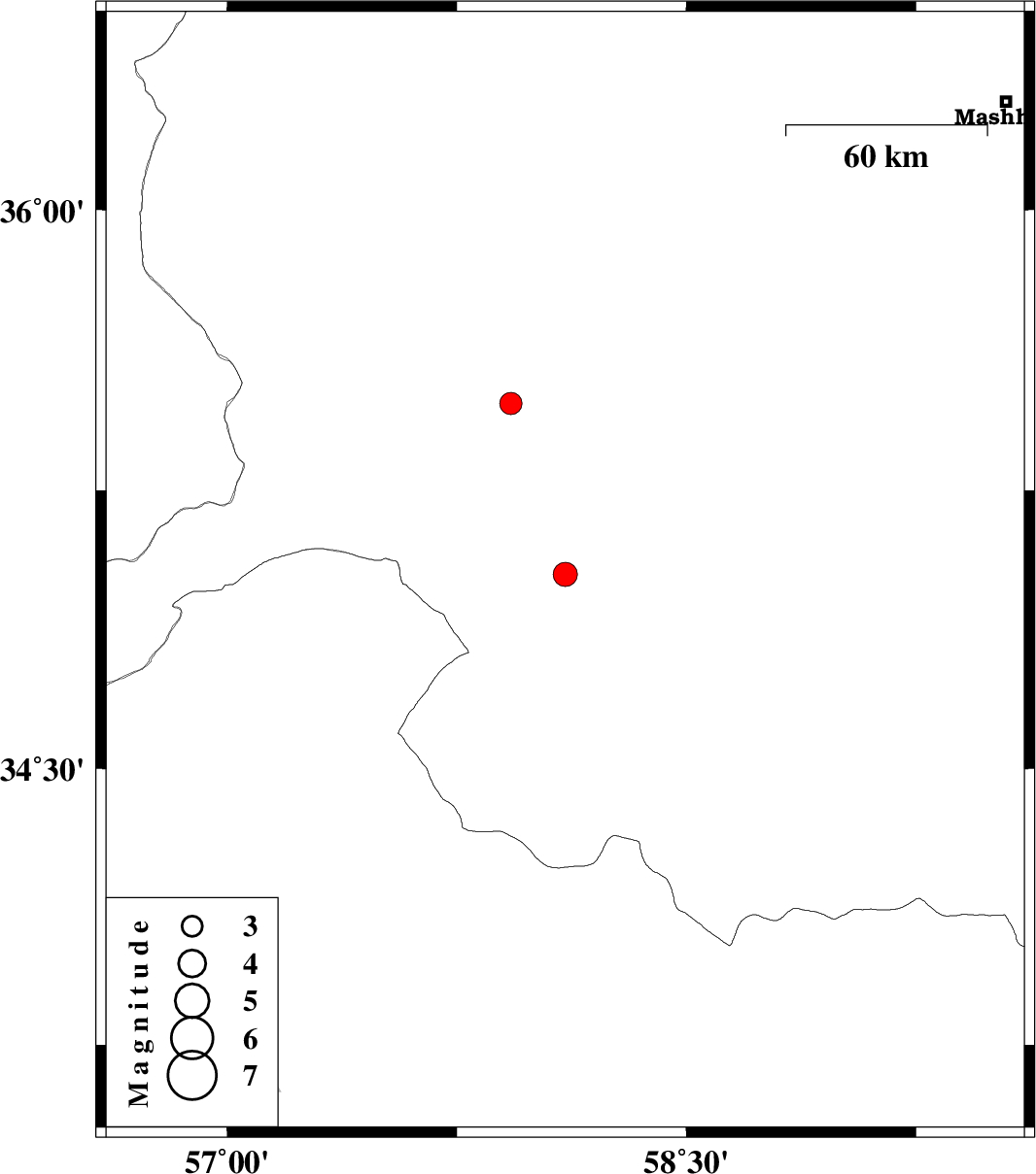 | 2016/10/05 | 07:53:09.6 | 11:23:09.6 | 35.483 | 57.927 | 14 | ML3.3 | Khorasan(center) Province, 25 km North of Bardeskan |