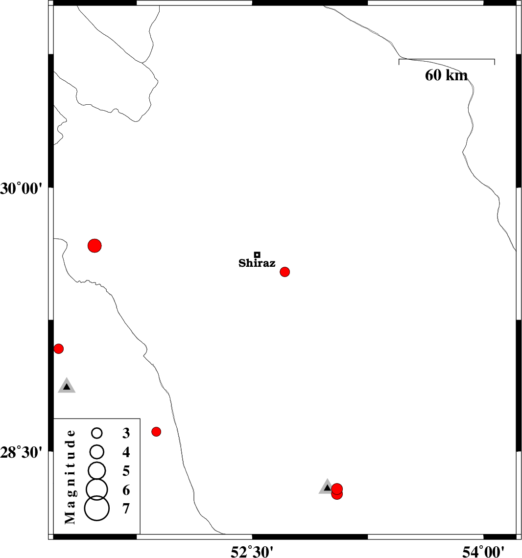 | 2016/09/27 | 11:11:47.8 | 14:41:47.8 | 29.671 | 51.478 | 8 | ML4 | Fars Province, 18 km -West of Kazerun |