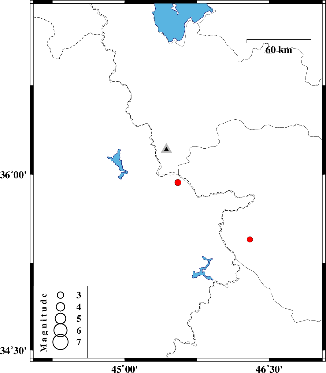 | 2016/10/15 | 14:43:32.8 | 18:13:32.8 | 35.932 | 45.552 | 14 | ML3 | Iraq, 26 km South of Sardasht | ||