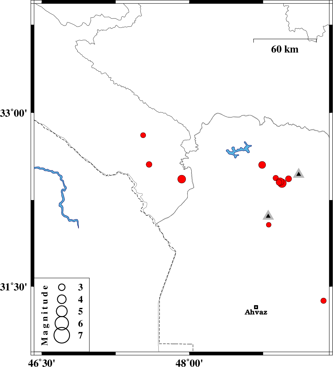 | 2016/09/30 | 12:32:41.4 | 16:02:41.4 | 32.395 | 48.942 | 14 | ML4 | Khoozestan Province, 16 km -West of Lali | ||