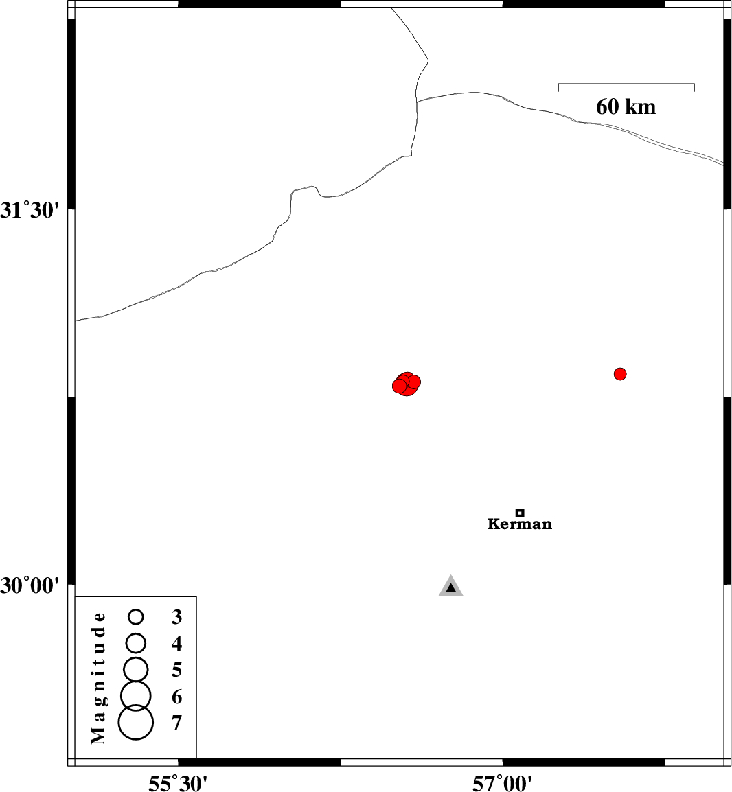 | 2016/10/20 | 15:22:36.3 | 18:52:36.3 | 30.822 | 56.558 | 6 | ML3.1 | Kerman Province, 2 km of Zarand | ||