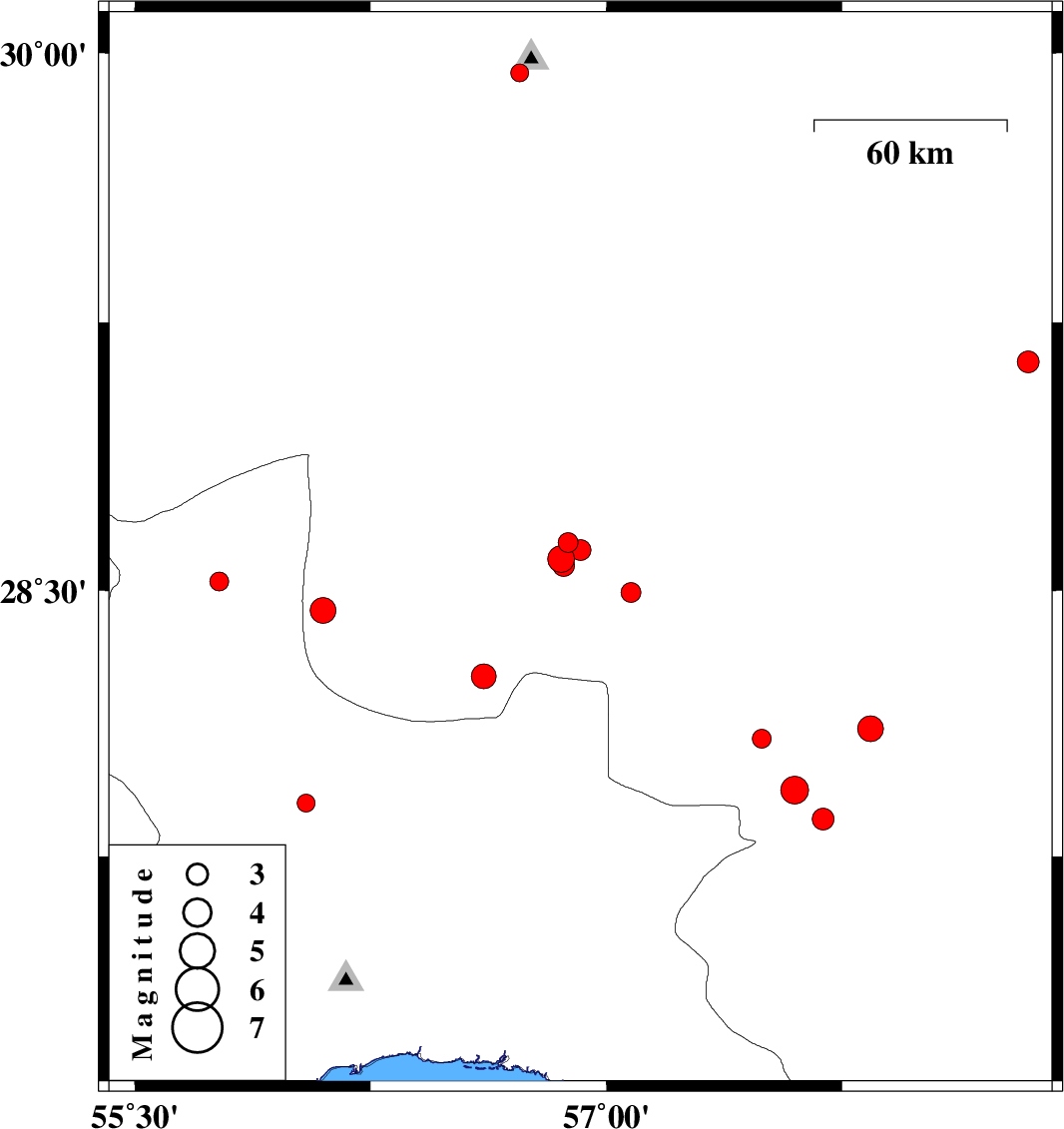 2016/10/22 05:46:49.8 09:16:49.8 28.61456.91814 ML3 Kerman Province, 80 km -West of Jiroft