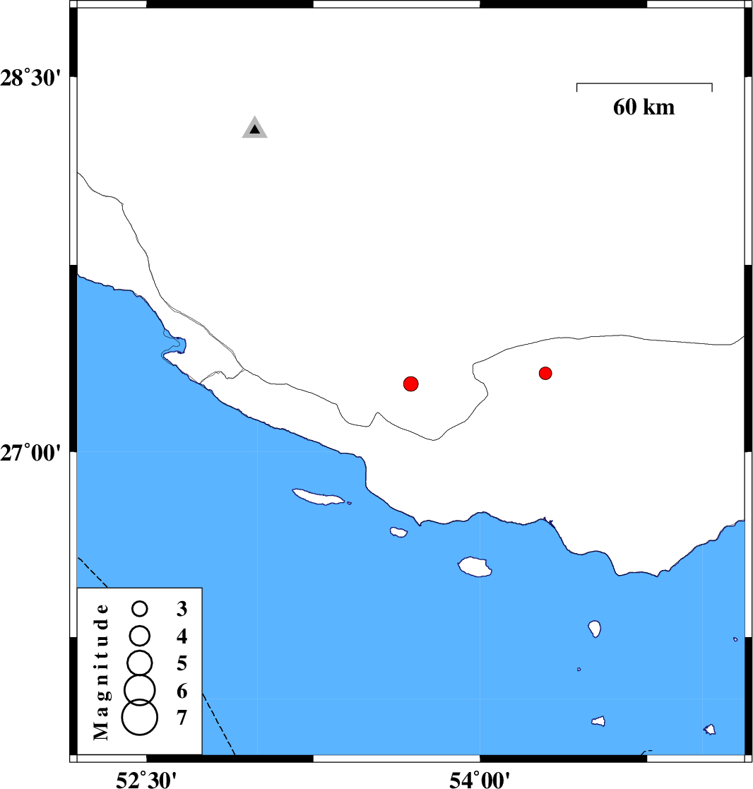 | 2016/10/19 | 18:00:10.8 | 21:30:10.8 | 27.273 | 53.688 | 15 | ML3 | Fars Province, 52 km -East of Lamerd | ||