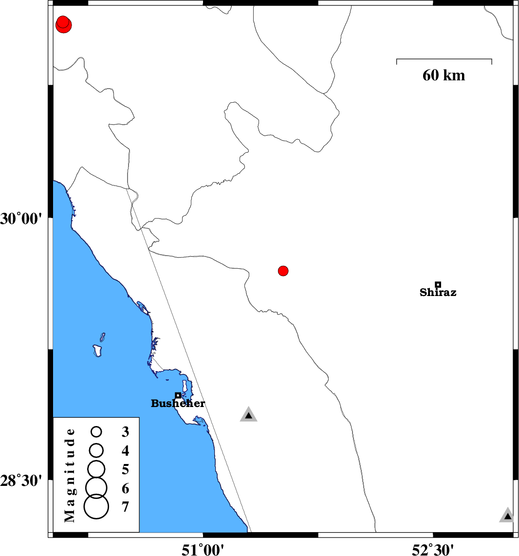 | 2016/10/21 | 05:19:06.1 | 08:49:06.1 | 29.697 | 51.522 | 15 | ML3 | Fars Province, 15 km -West of Kazerun | ||