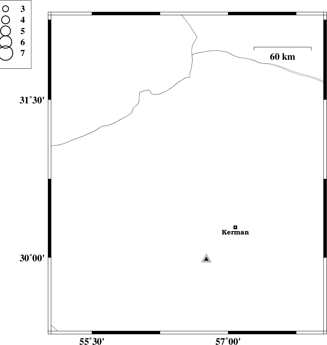 2016/10/22 | 19:27:02.9 | 22:57:02.9 | 31.435 | 57.218 | 14 | ML2.5 | Kerman Province, 43 km North-East of Ravar | ||