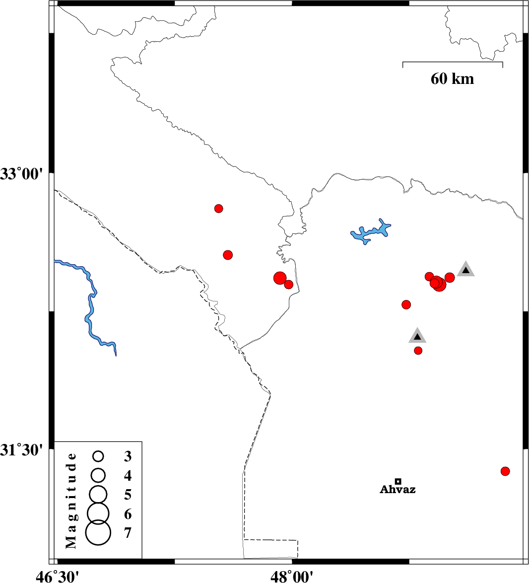 | 2016/09/30 | 12:35:54.3 | 16:05:54.3 | 32.409 | 48.922 | 18 | ML3.5 | Khoozestan Province, 18 km -West of Lali | ||