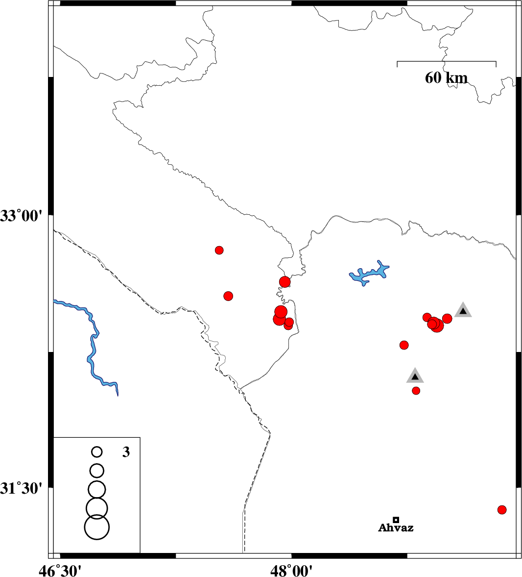 2016/10/08 | 00:24:16.2 | 03:54:16.2 | 32.036 | 48.807 | 15 | ML2.3 | Khoozestan Province, 4 km of Shushtar | ||