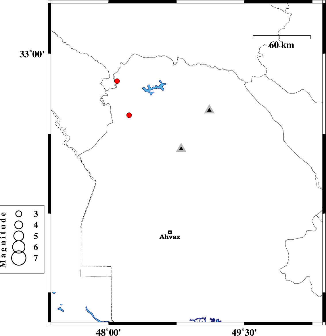| 2016/10/23 | 13:30:55.6 | 17:00:55.6 | 32.287 | 48.73 | 18 | ML2.6 | Khoozestan Province, 30 km North-West of Shushtar |