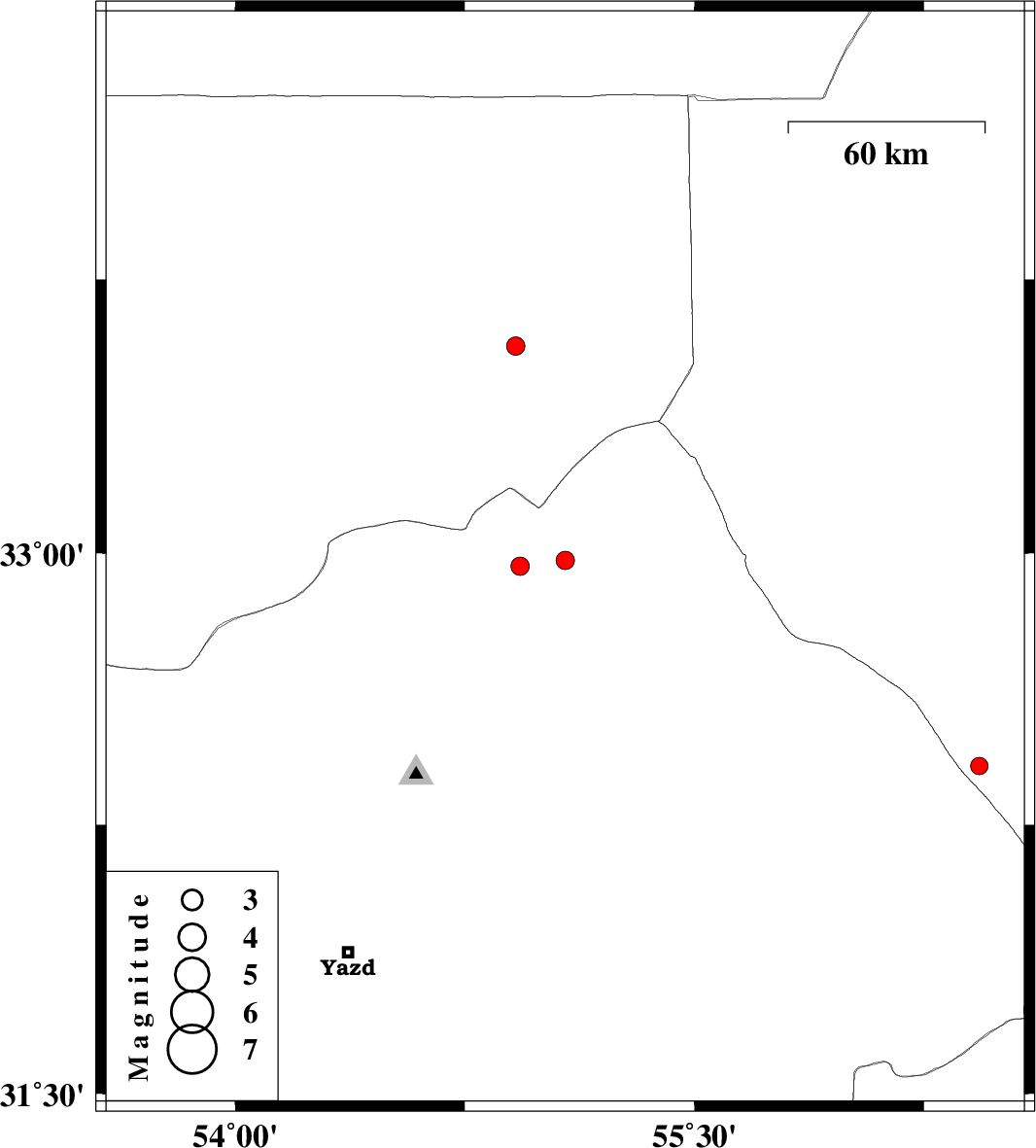 2016/10/31 | 09:06:33.6 | 12:36:33.6 | 32.98 | 55.078 | 11 | ML2.7 | Yazd Province, 156 km North-West of Bafq | ||