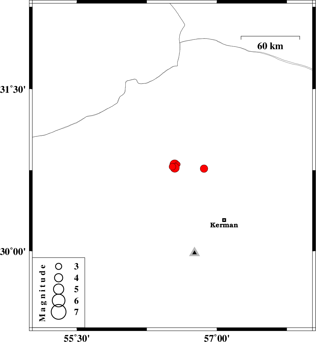2016/10/26 | 19:12:46.8 | 22:42:46.8 | 30.765 | 56.863 | 15 | ML3.6 | Kerman Province, 29 km -East of Zarand |