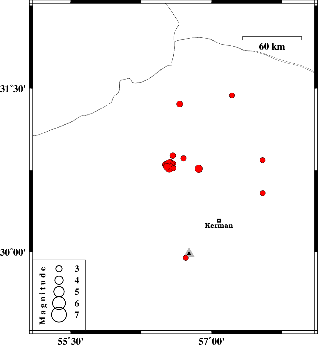 | 2016/10/09 | 14:17:55.0 | 17:47:55.0 | 29.944 | 56.725 | 14 | ML2.5 | Kerman Province, 15 km -East of Bardsir | ||